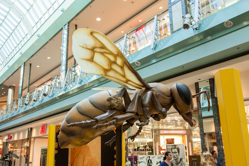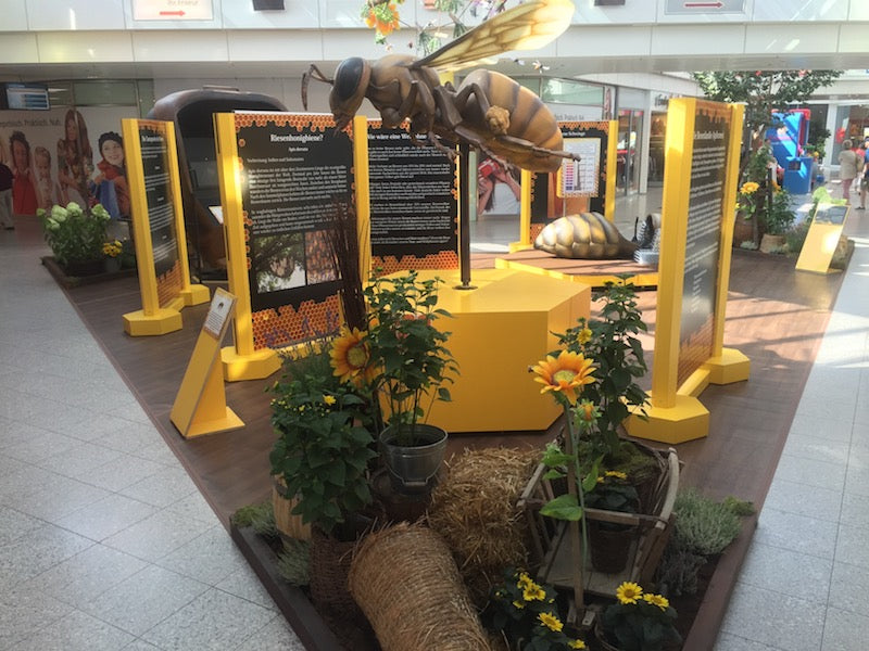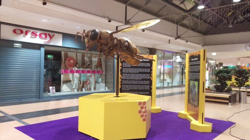 Dieses Bienenexponat bereichert jede Ausstellung. Die 250 fach vergrößerte Biene dreht sich auf einem Podest. Die Betrachter können die langsam horizontal rotierende Biene aus allen Blickwinkeln studieren.
