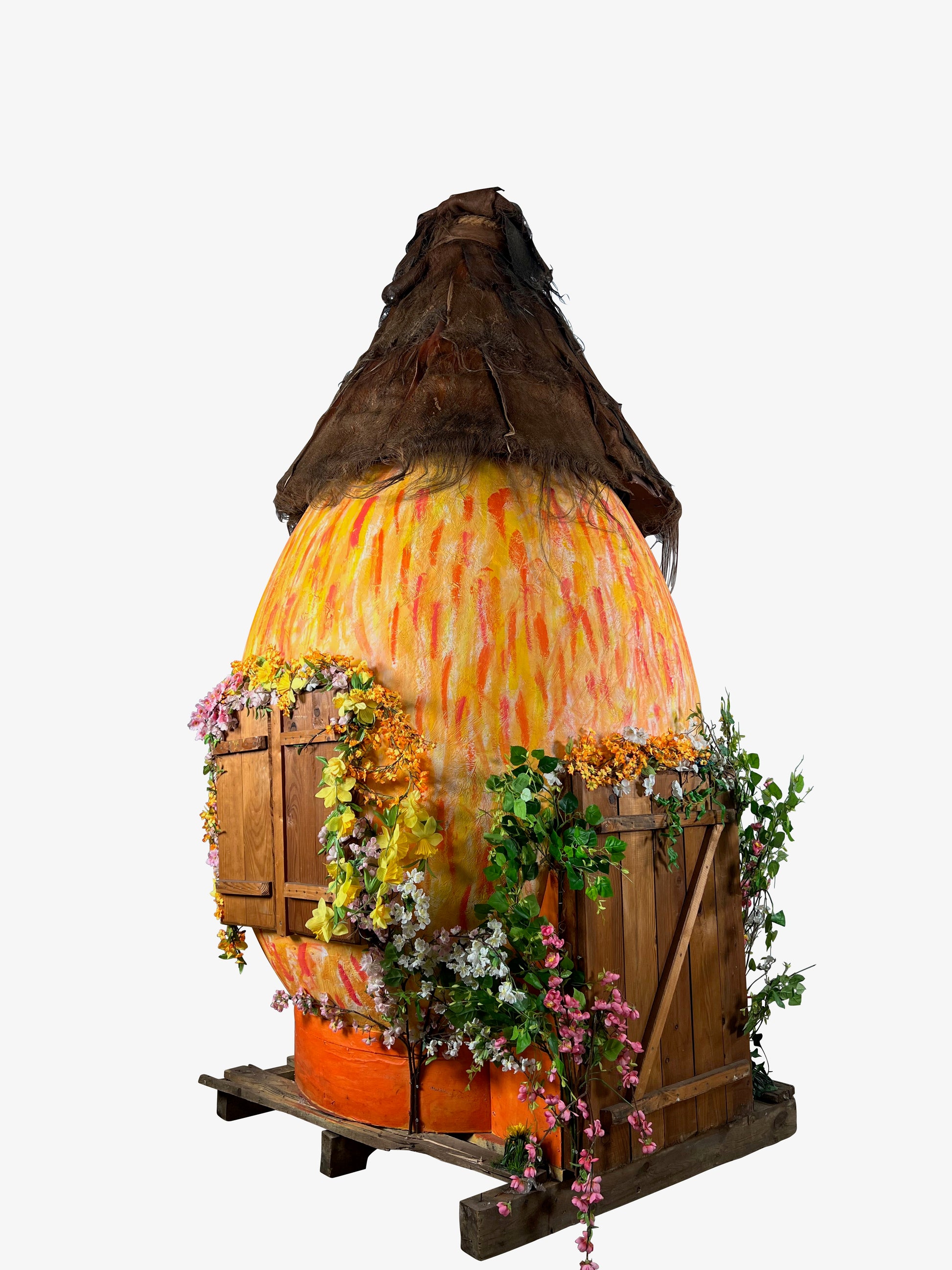 Das 270 cm große Eierhaus besteht aus 2 Teilen. Dach und Ei werden jeweils auf Palette geliefert.