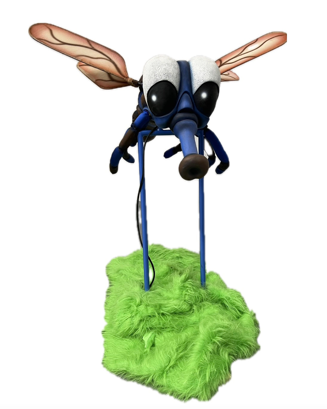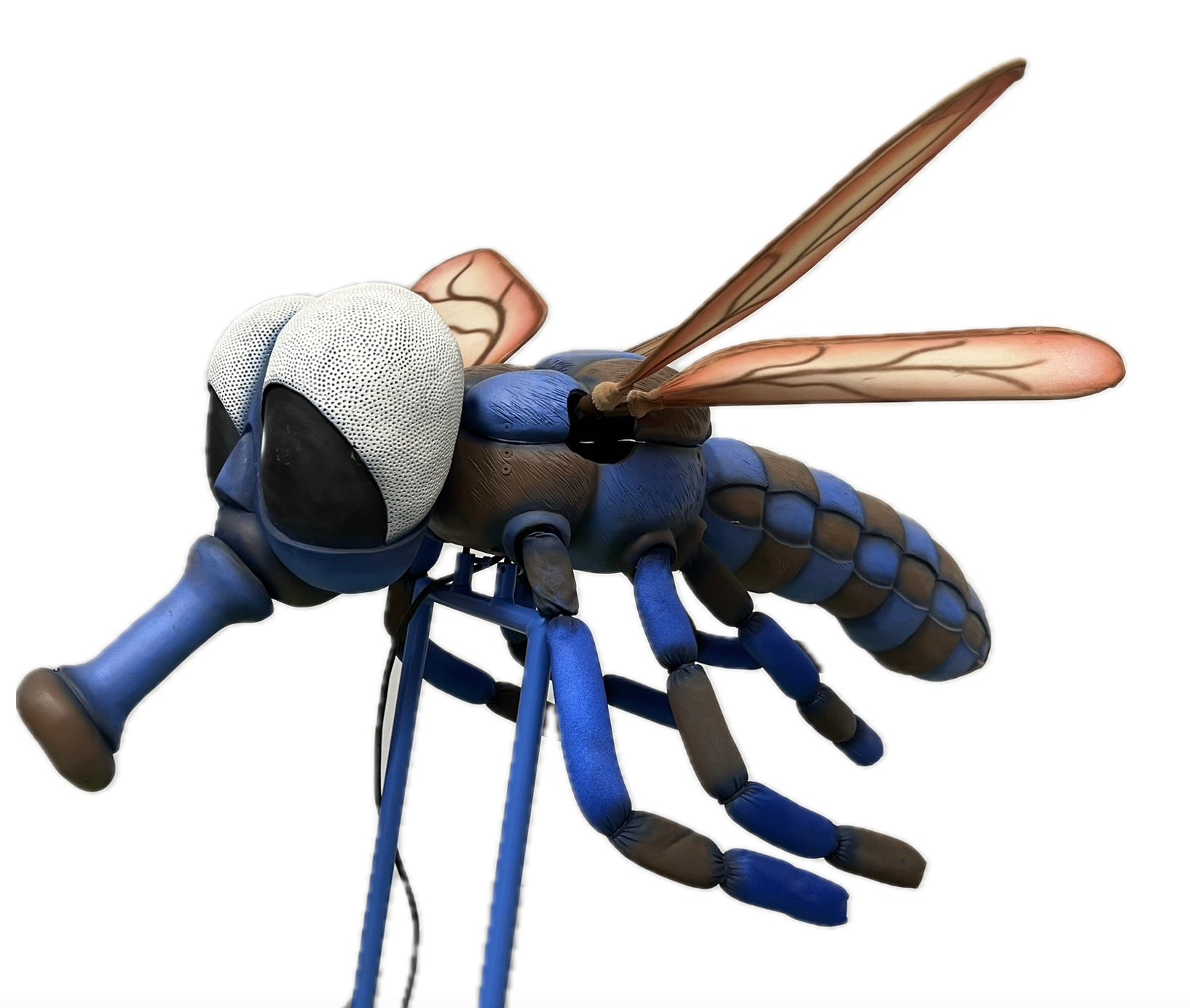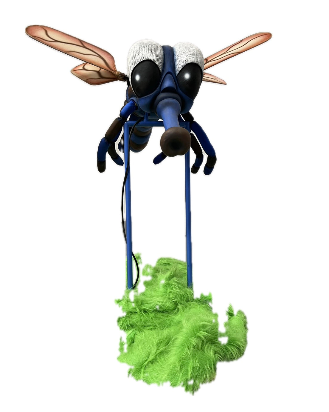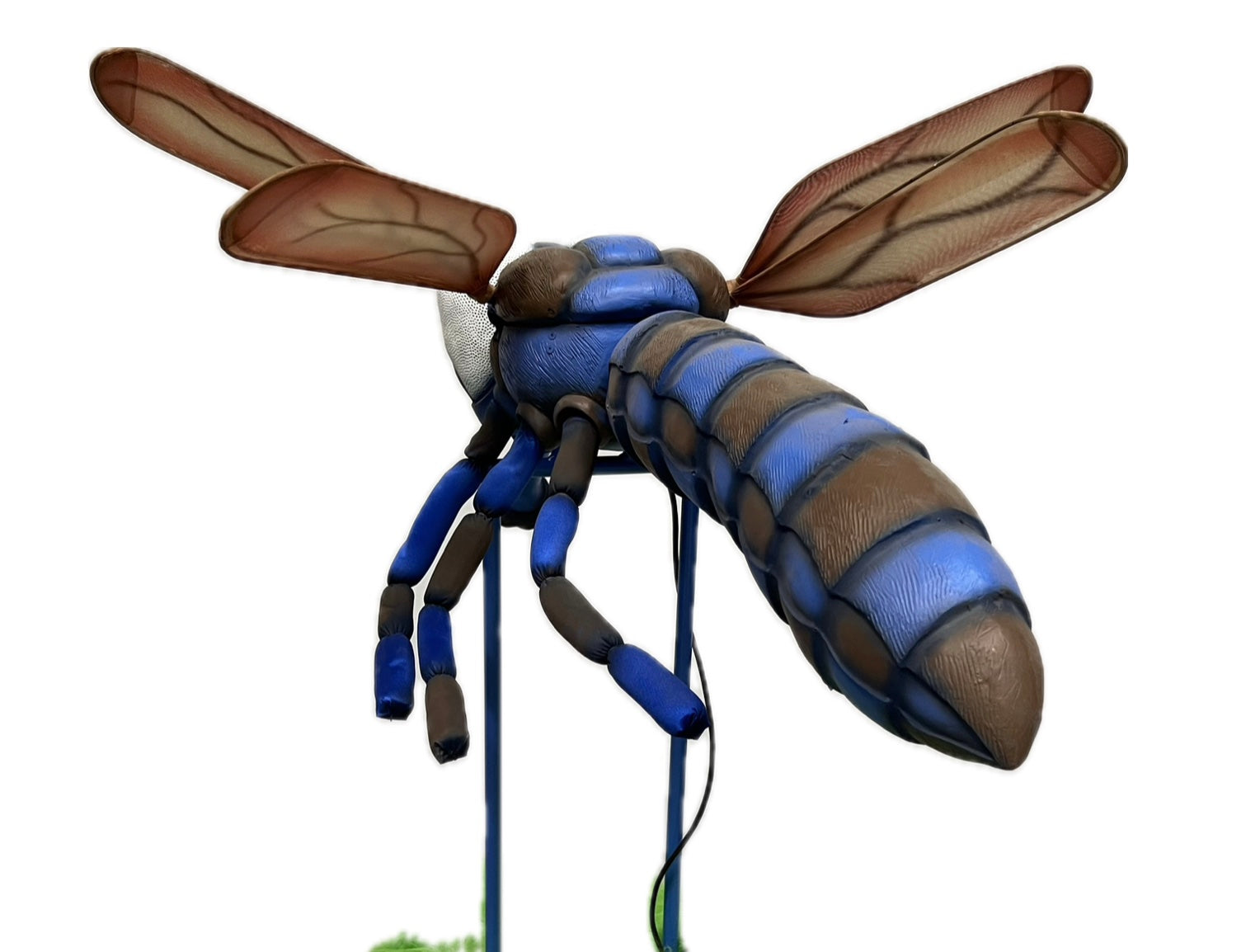 Diese elektrisch bewegliche Insektennachbbildung entstammt unserem Vermietungslager. Die Figur wurde als lustiger Antrieb für unsere Rasenmäherrally eingesetzt.