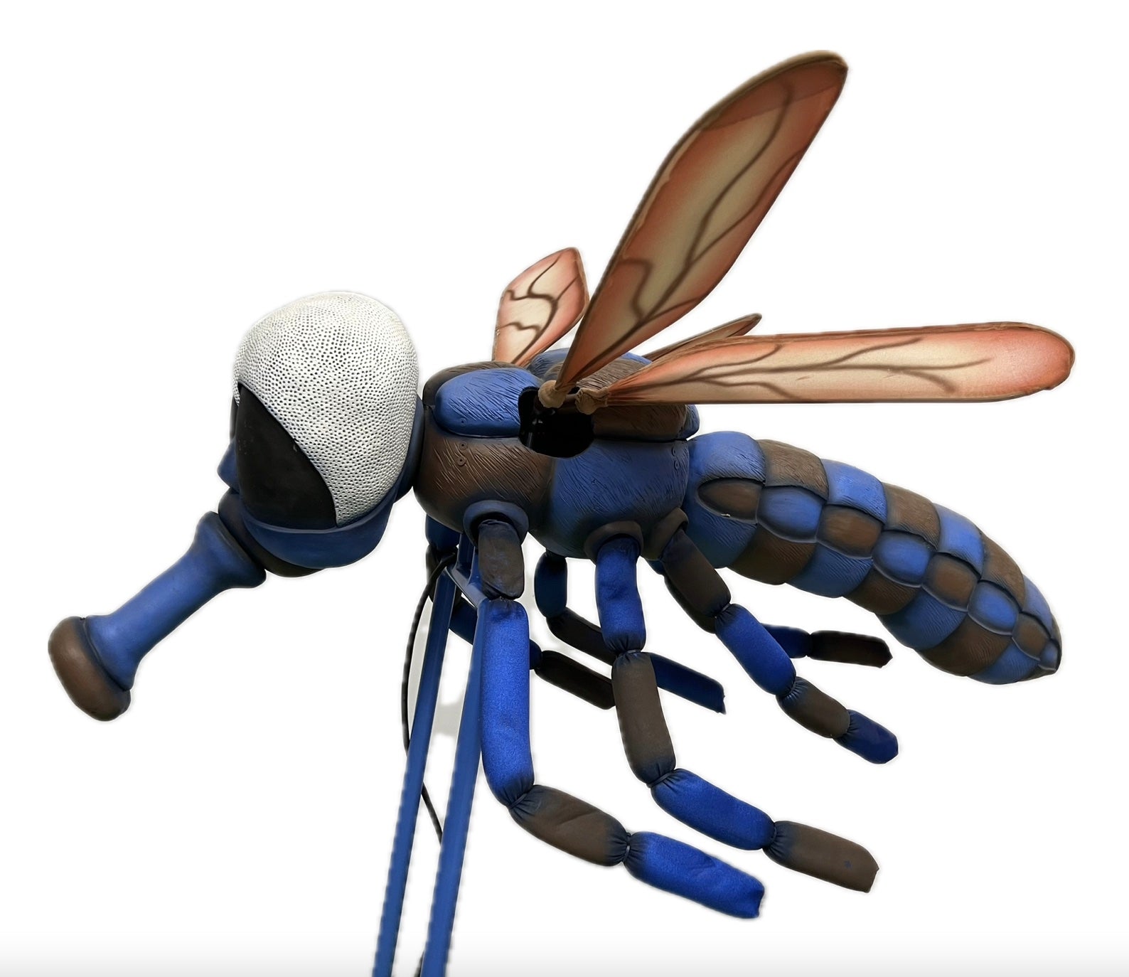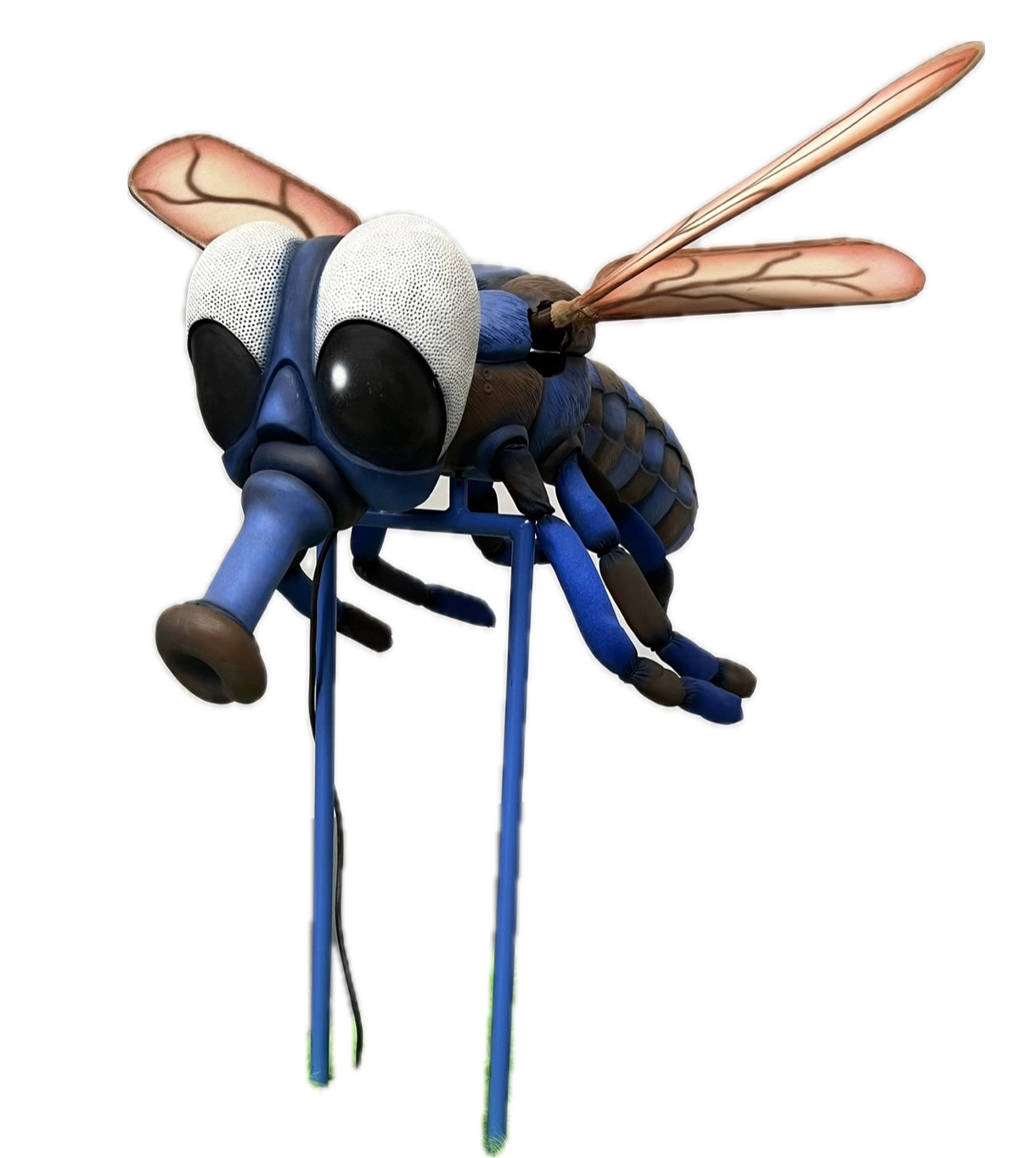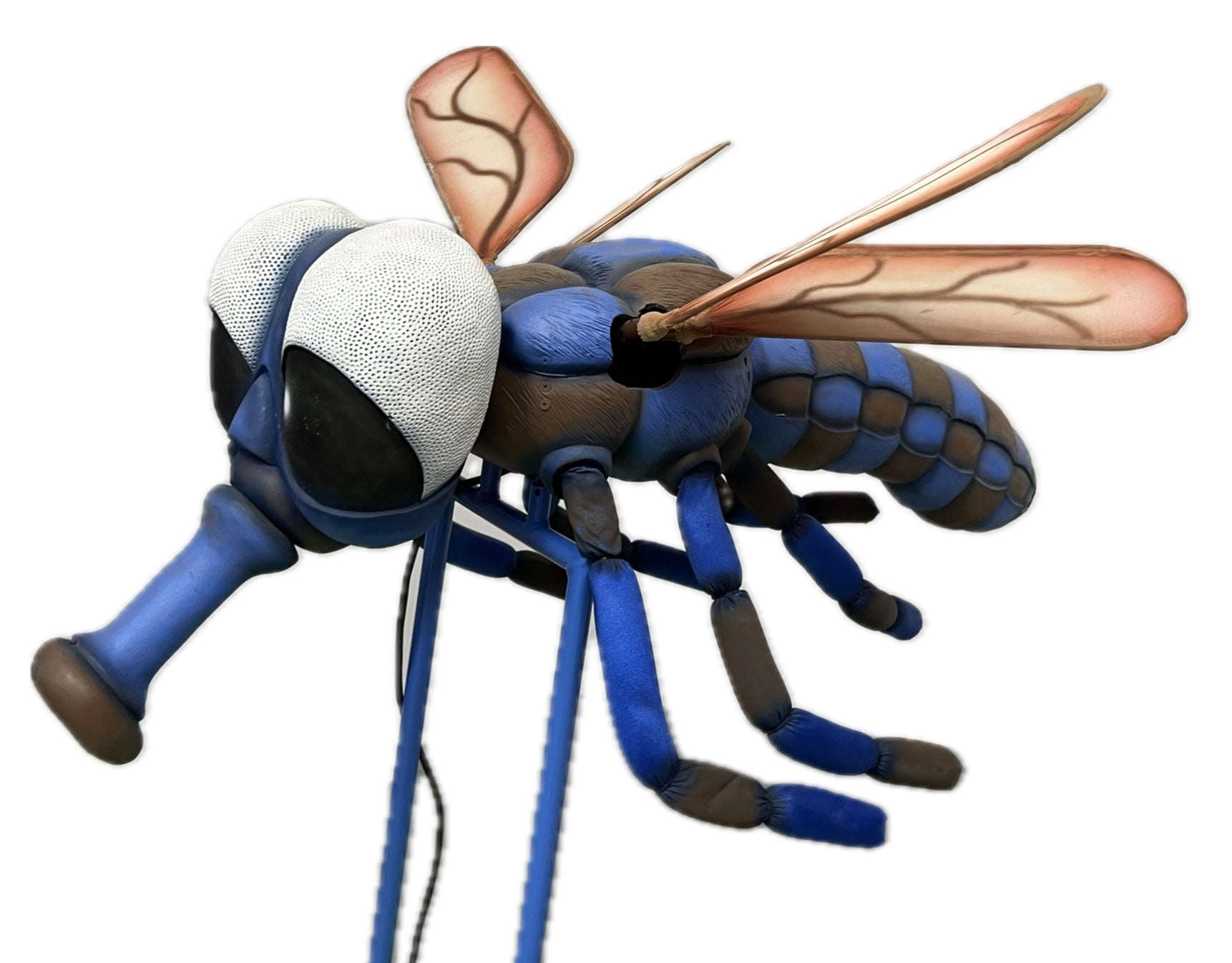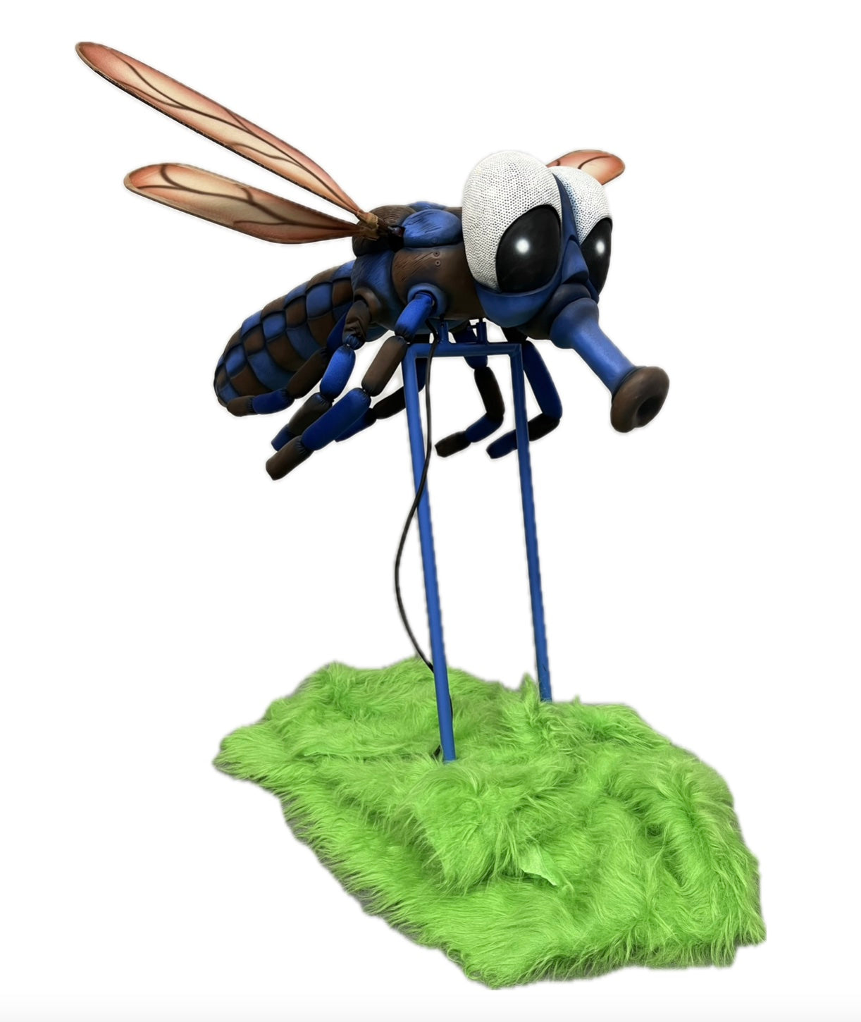 Diese elektrisch bewegliche Insektennachbbildung entstammt unserem Vermietungslager. Die Figur wurde als lustiger Antrieb für unsere Rasenmäherrally eingesetzt.