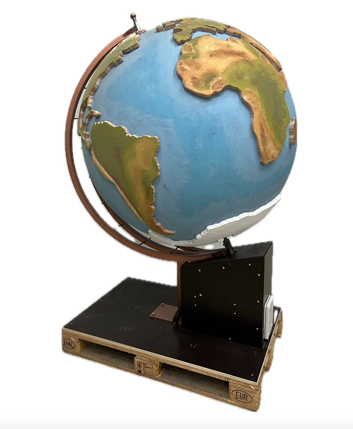 Mechanisiertes handgefertigtes Unikat aus GFK, Kontinenten aus Hartschaum, Oberfläche PU beschichtet.