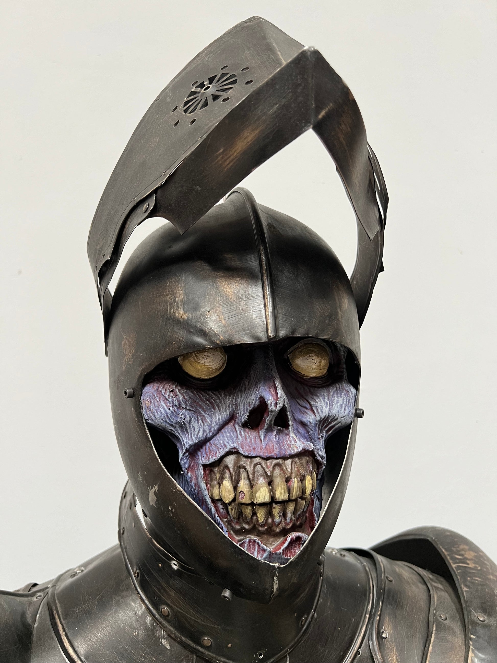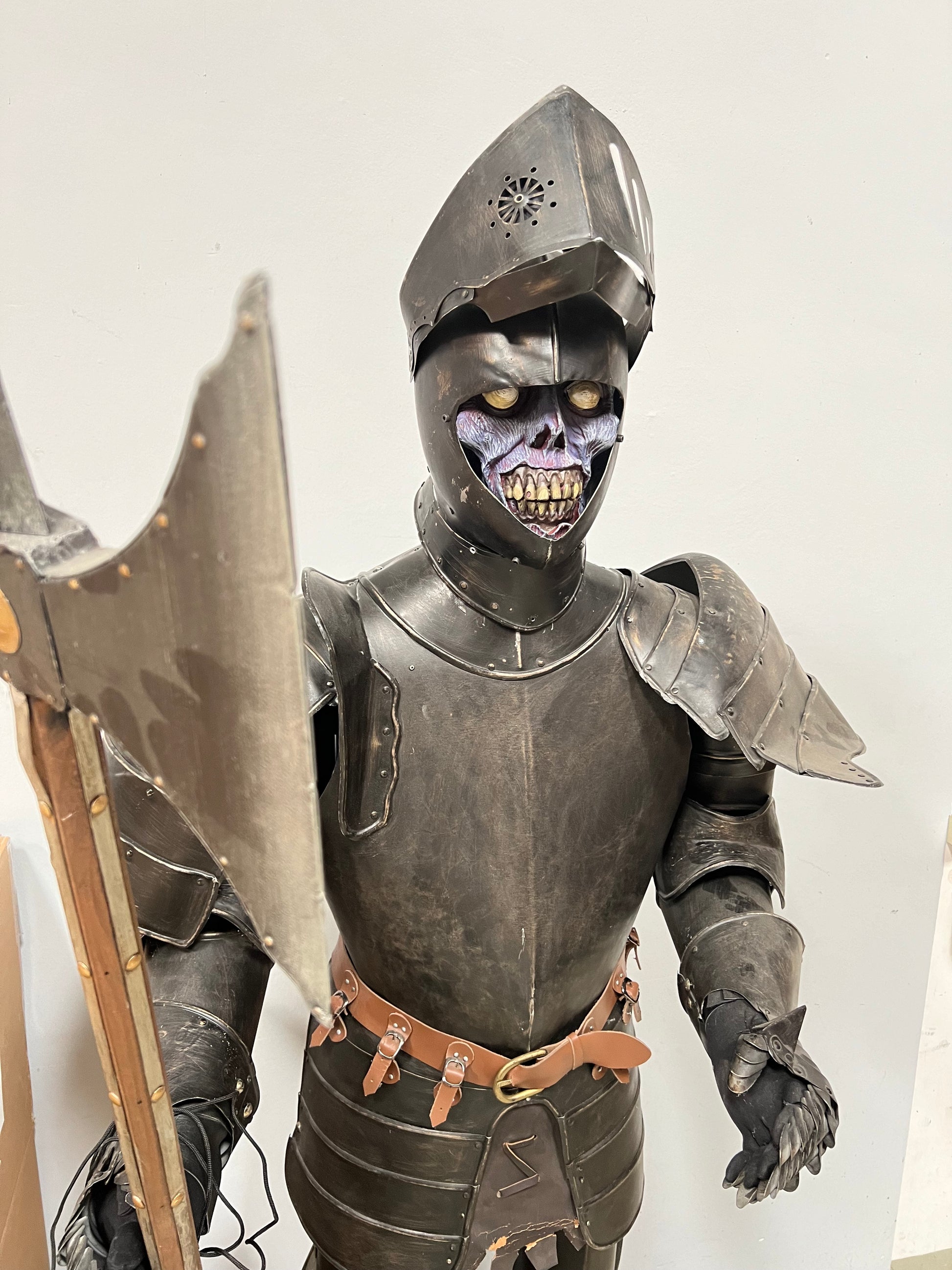 Die Figur ist 190 cm groß und führte eine Kopfbewegung auf und ab aus, sowie eine Armbewegung horizontal hin und her. Mit der linken Hand schwenkt der Zombie Ritter einen abgeschlagenen Schädel hin und her.