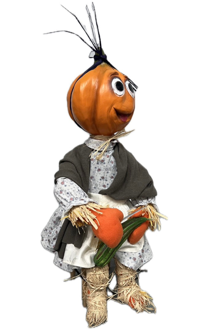 Die Figur ist 75 cm stehend gemessen groß und ca 60 cm sitzend gemessen.