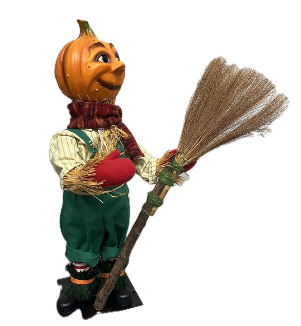 This movable figure was once part of a Halloween decoration in a shopping center's activity area. The figure performs a hip movement. The wooden box can be used to decorate small Halloween items.