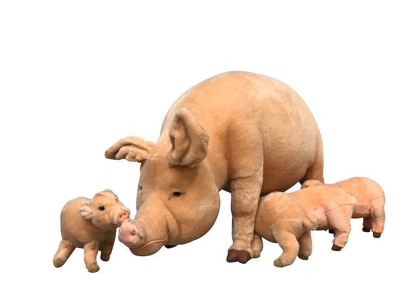 Schwein / Sau mit 3 Ferkeln Schweinefamilie (unbewegliche Plüschtiere)