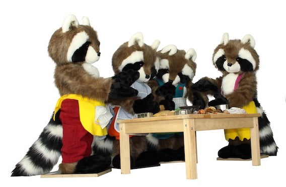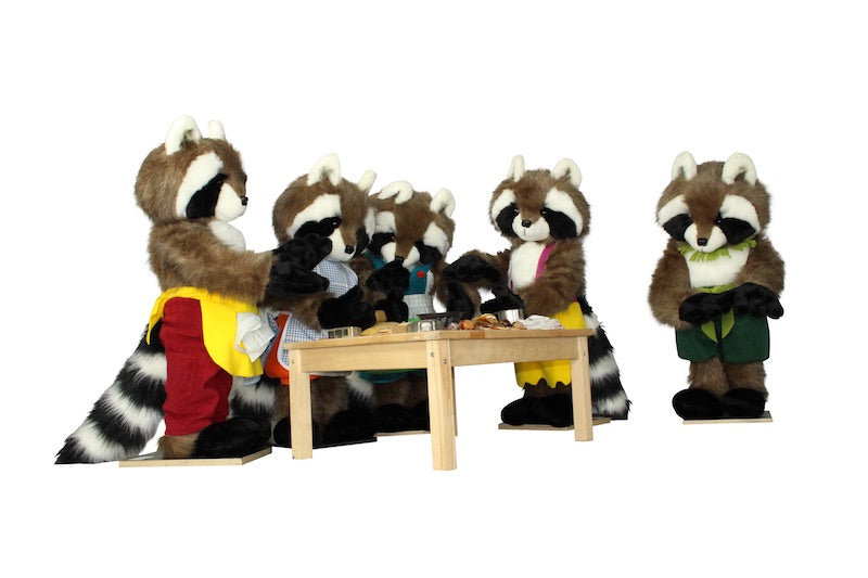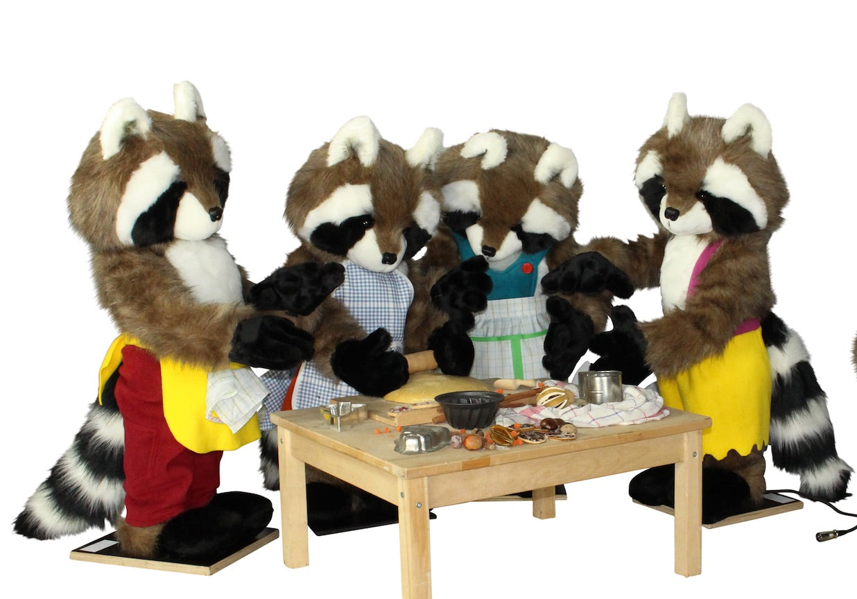Waschbär bringt Mehlsäcke mit Sackkarre.