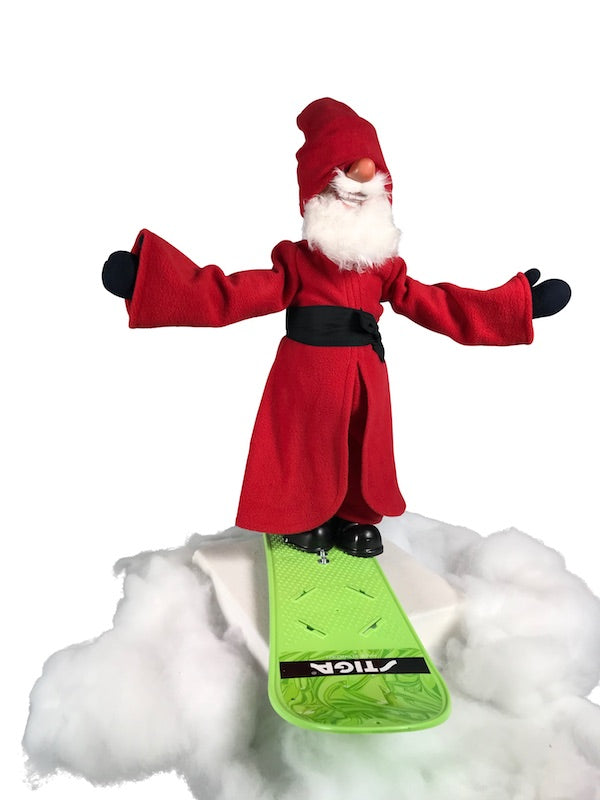 Diese 75 cm große Figur bewegt sich sanft schwenkend auf einem Snowboard.